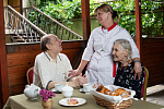 Дом находится на закрытой территории площадью 2000 кв.м. Здесь есть все для отдыха и прогулок на свежем воздухе: удобные дорожки, лавочки и крытая беседка. В хорошую погоду сотрудники пансионата организовывают пикники, чаепития, концерты и занятия ЛФК на открытой территории.